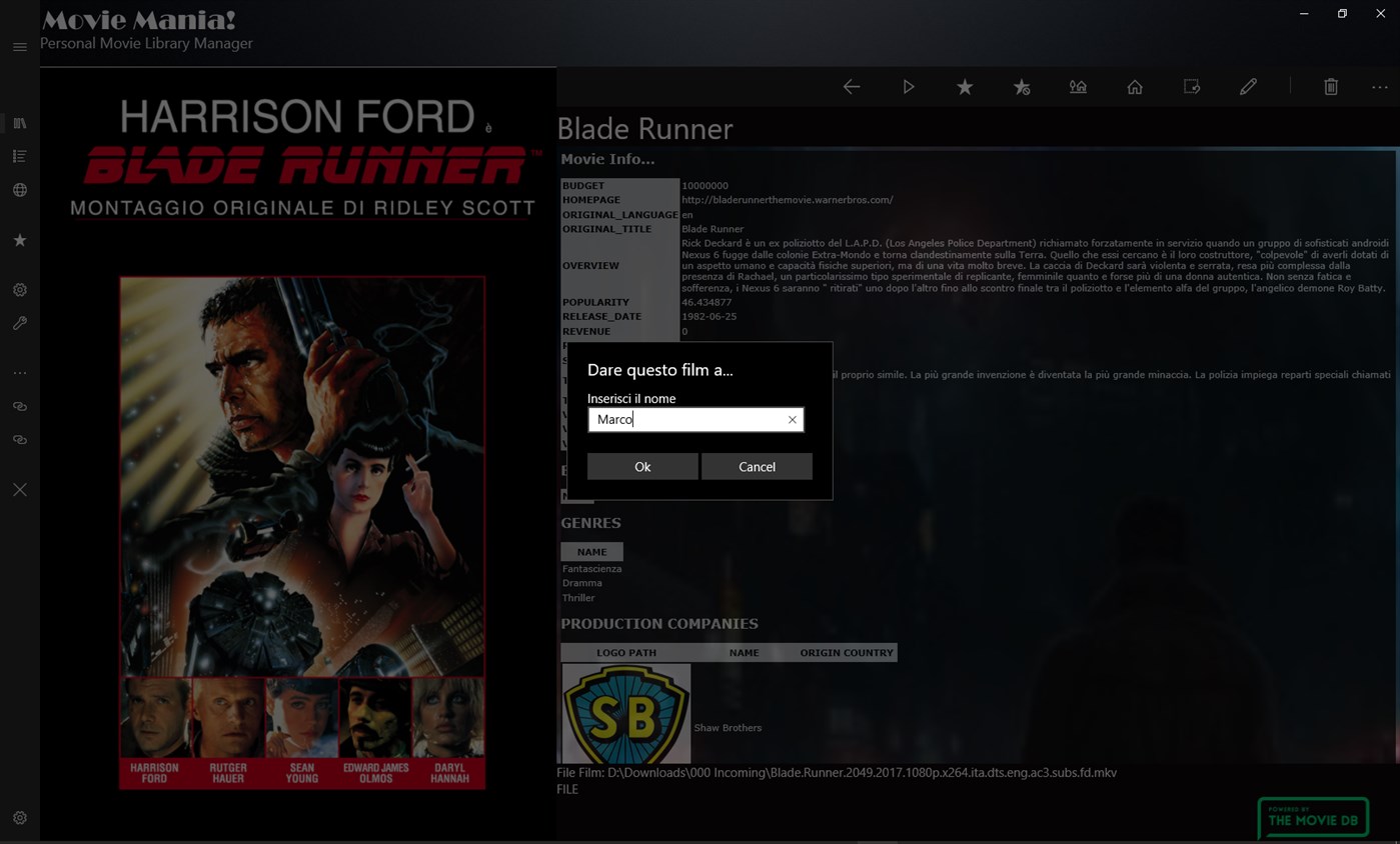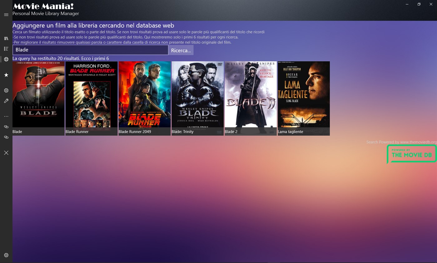 Movie Mania! è stata uno dei miei progetti più ambiziosi e soddisfacenti: un gestore di librerie film multipiattaforma, disponibile sia per Windows che per Android, costruito interamente da zero come progetto indie. Non è mai diventata un’applicazione di massa — e non era questo l’obiettivo — ma ha raggiunto un consenso genuino tra chi la usava, con recensioni positive, download costanti e feedback reale da utenti reali in tutto il mondo.